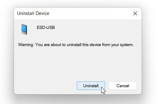 Buka Pengelola Perangkat seperti di atas. Klik kanan pada driver USB dan pilih Copot pemasangan perangkat.Tekan tombol Copot pemasangan.