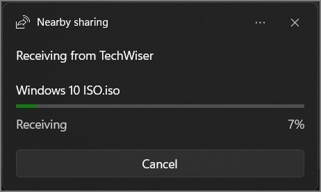 8. Transfer akan dimulai saat file diterima di PC kedua.