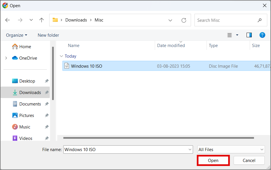 3. Cari file atau folder Anda melalui jendela pop-up dan klik Buka.