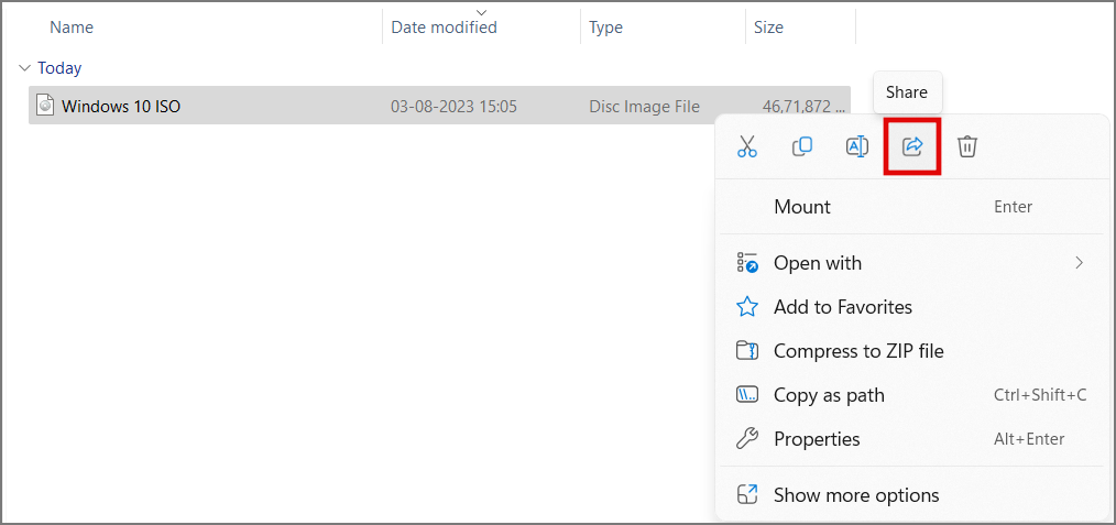 3. Sekarang, klik kanan pada file apa pun yang Anda ingin berbagi dan ketuk ikon Bagikan .