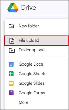 2. Klik Baru terletak di pojok kiri atas dan pilih File or Folder Upload.