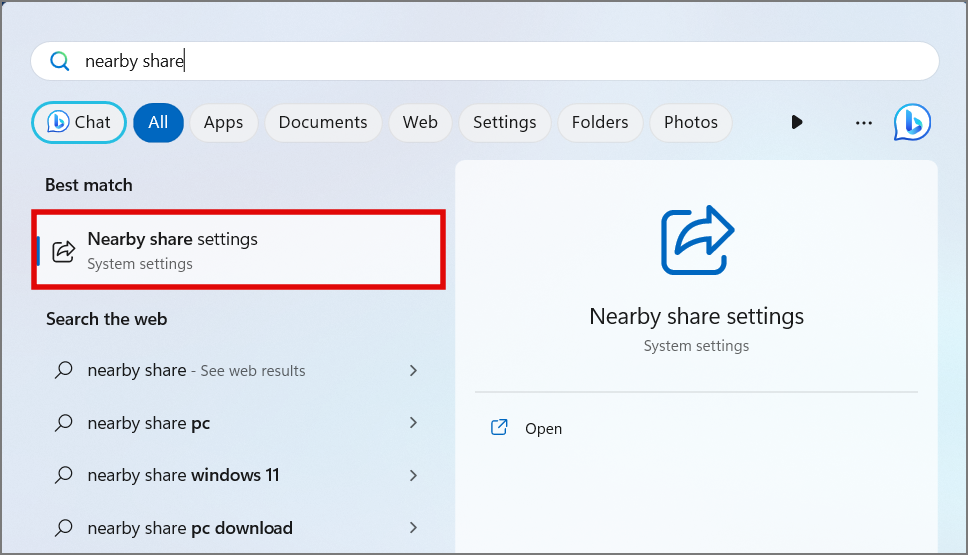1. Telusuri Berbagi Langsung dari ikon penelusuran di bilah tugas dan ketuk Berdekatan berbagi setelan.