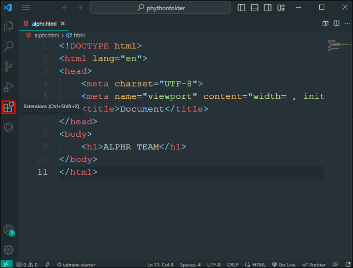 Jika Anda Lebih baik tidak mengutak-atik ekstensi dulu, Terminal di VS Code memungkinkan Anda menjalankan file HTML tanpa ekstensi, meskipun ini sedikit lebih rumit: