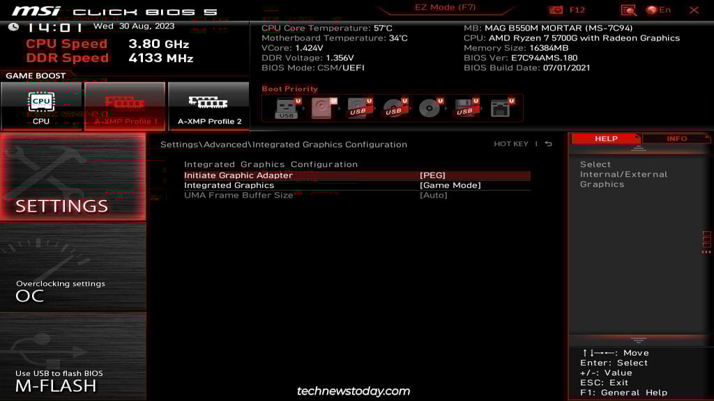 Anda harus melakukannya buka utilitas pengaturan BIOS MSI sebelum melakukan hal lain. Untuk melakukannya, tekan tombol BIOS (Del/F2) saat menyalakan PC Anda.