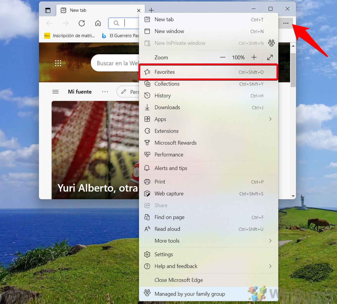 Anda juga dapat menggunakan tombol pintas “Atrl+Shift+O” untuk menampilkan panel Edge Favorites.