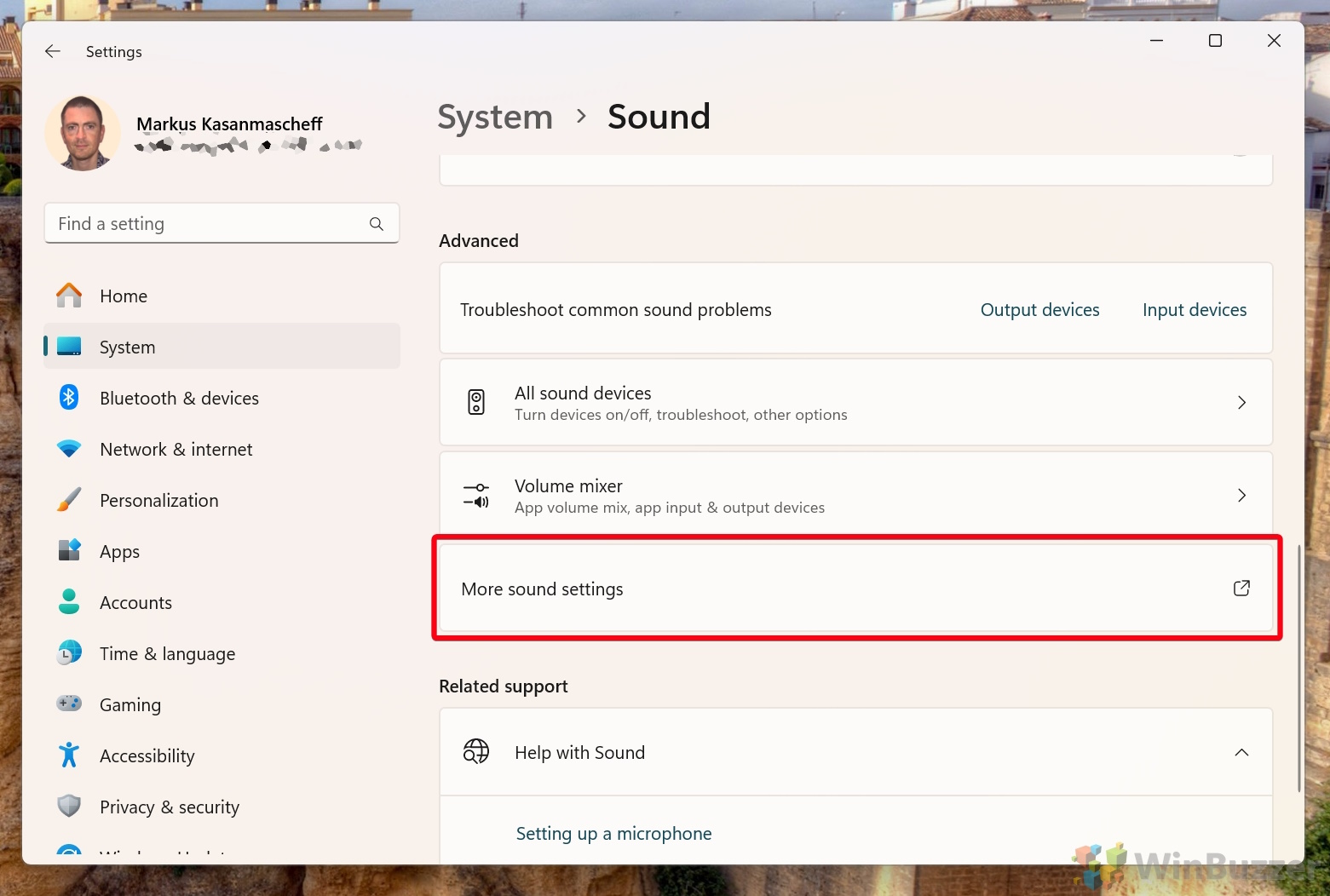 Gulir ke bawah ke “Lanjutan” dan klik “Setelan suara lainnya”.