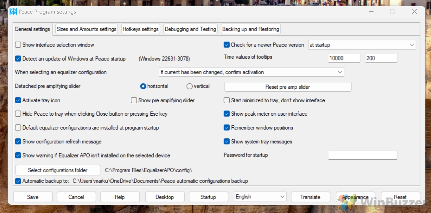 Antarmuka Equalizer Perdamaian untuk Equalizer APO