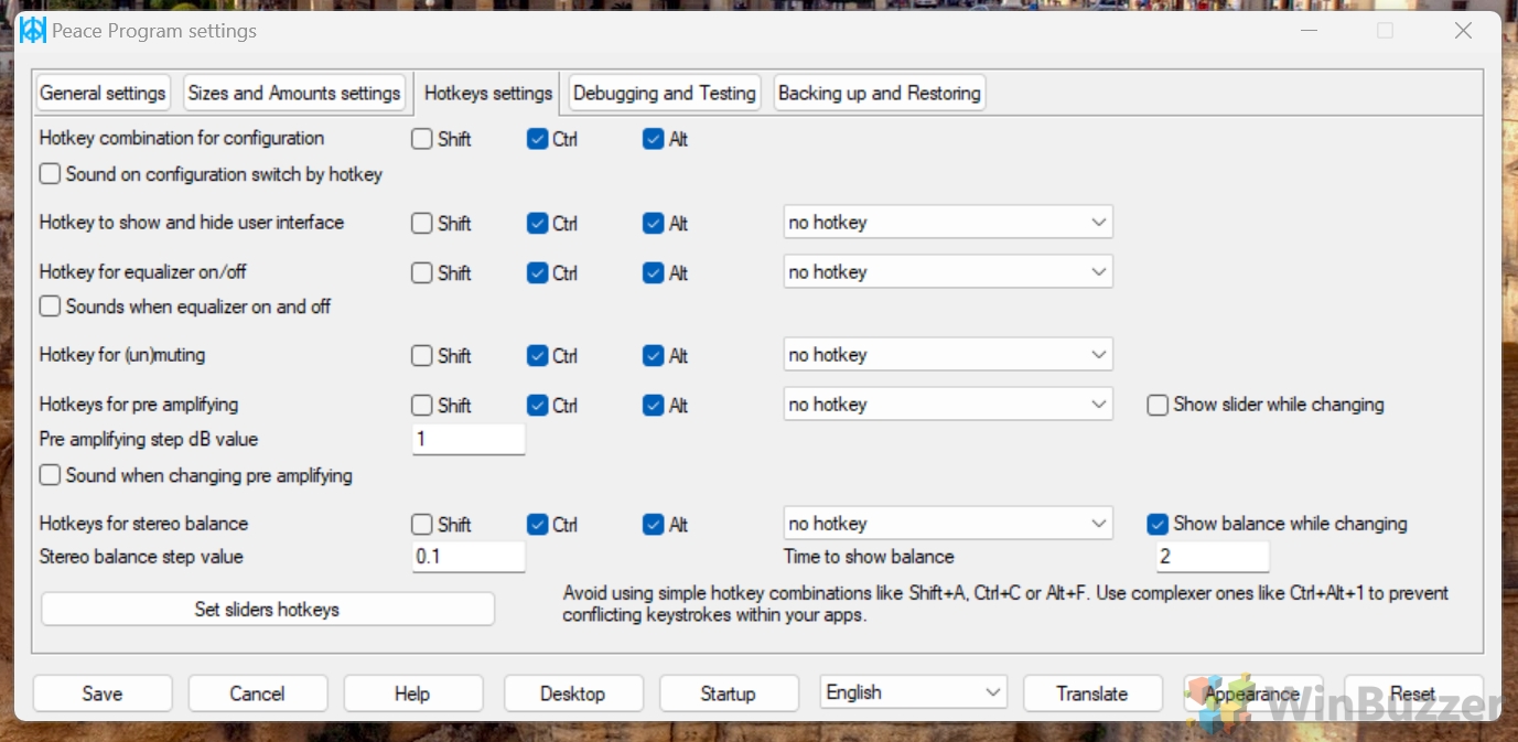 Dalam pengaturan, Anda dapat menyempurnakan Peace Equalizer dengan berbagai cara.
