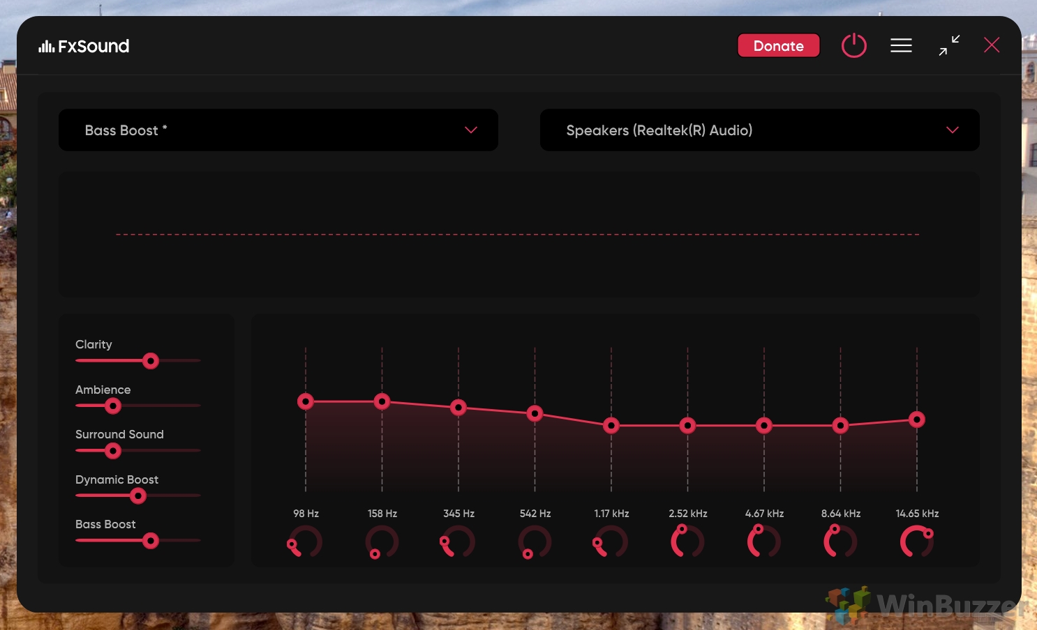 Equalizer suara grafis yang disediakan oleh Realtek menawarkan sepuluh penggeser untuk berbagai rentang frekuensi.