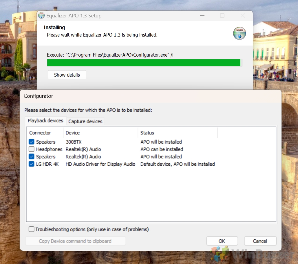 Unduh Equalizer APO dari situs resmi dan jalankan penginstalnya. Pilih perangkat yang ingin Anda gunakan Equalizer APO selama penyiapan.