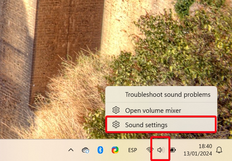 Setelah klik kanan mouse pada ikon speaker di sisi kanan bilah tugas, Anda dapat langsung membuka “Setelan suara” dari sana.