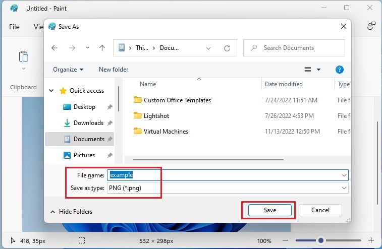 Di jendela Simpan Sebagai, pilih lokasi tempat Anda ingin menyimpan gambar. Selagi Anda melakukannya, tetapkan nama file dan ukurannya juga. Terakhir, tekan tombol Simpan.
