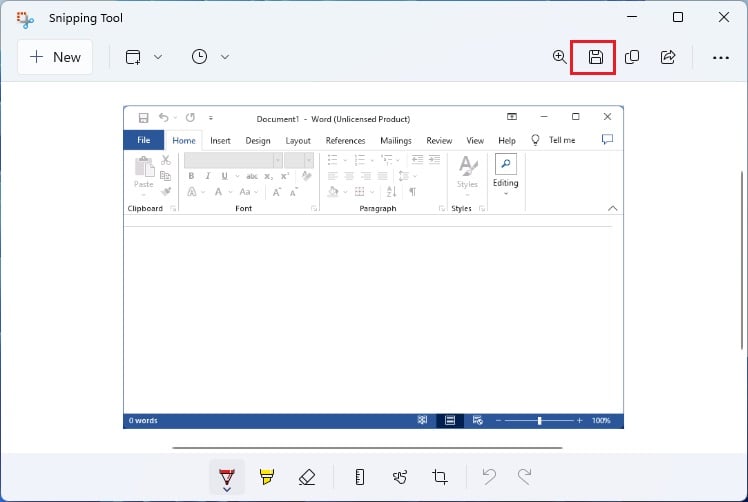 Pindah kembali ke aplikasi Snipping Tool, tempat Anda dapat melihat tangkapan layar terbaru.Sekarang, Anda dapat membuat perubahan pada gambar menggunakan editor bawaan Snipping Tool.Setelah selesai,
