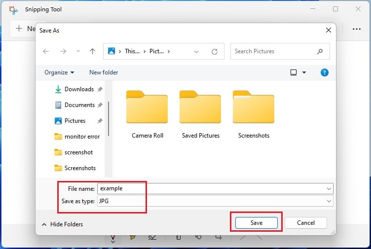 Di sini , pindah ke lokasi tempat Anda ingin menyimpan tangkapan layar ini. Kemudian, masukkan nama file yang diinginkan dan atur jenisnya. Terakhir, tekan Save, dan bravo, Anda berhasil mengambil tangkapan layar di Dell.