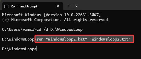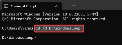 cd/d”C:\Users\WindowsLoop\Desktop”