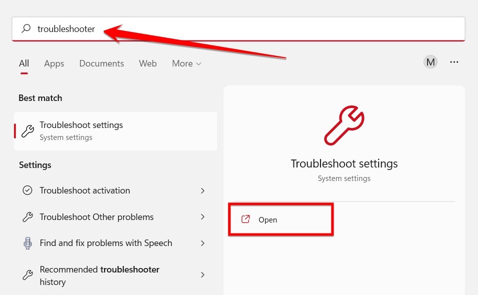Tekan Windows+S untuk membuka kotak telusur di Windows 11.Ketik pemecah masalah di kotak telusur dan tekan Enter.Saat setelan Pemecah Masalah terbuka, Anda harus mengklik tombol “ Opsi Pemecah Masalah lainnya“.Di antara opsi Pemecah Masalah lainnya, Anda harus mengeklik “Jalankan“opsi di sebelah opsi”Aplikasi Windows Store”.