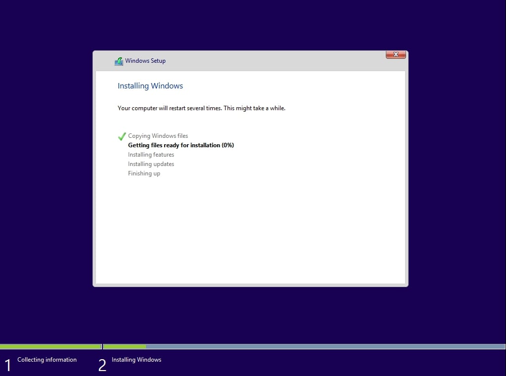 Pengaturan akan menyalin file, menginstal fitur, dan memulai ulang sistem Anda beberapa kali. Jangan lepaskan USB hingga penyiapan Windows selesai dan Anda mencapai layar Hai, kami sedang menyiapkan segalanya untuk Anda.
