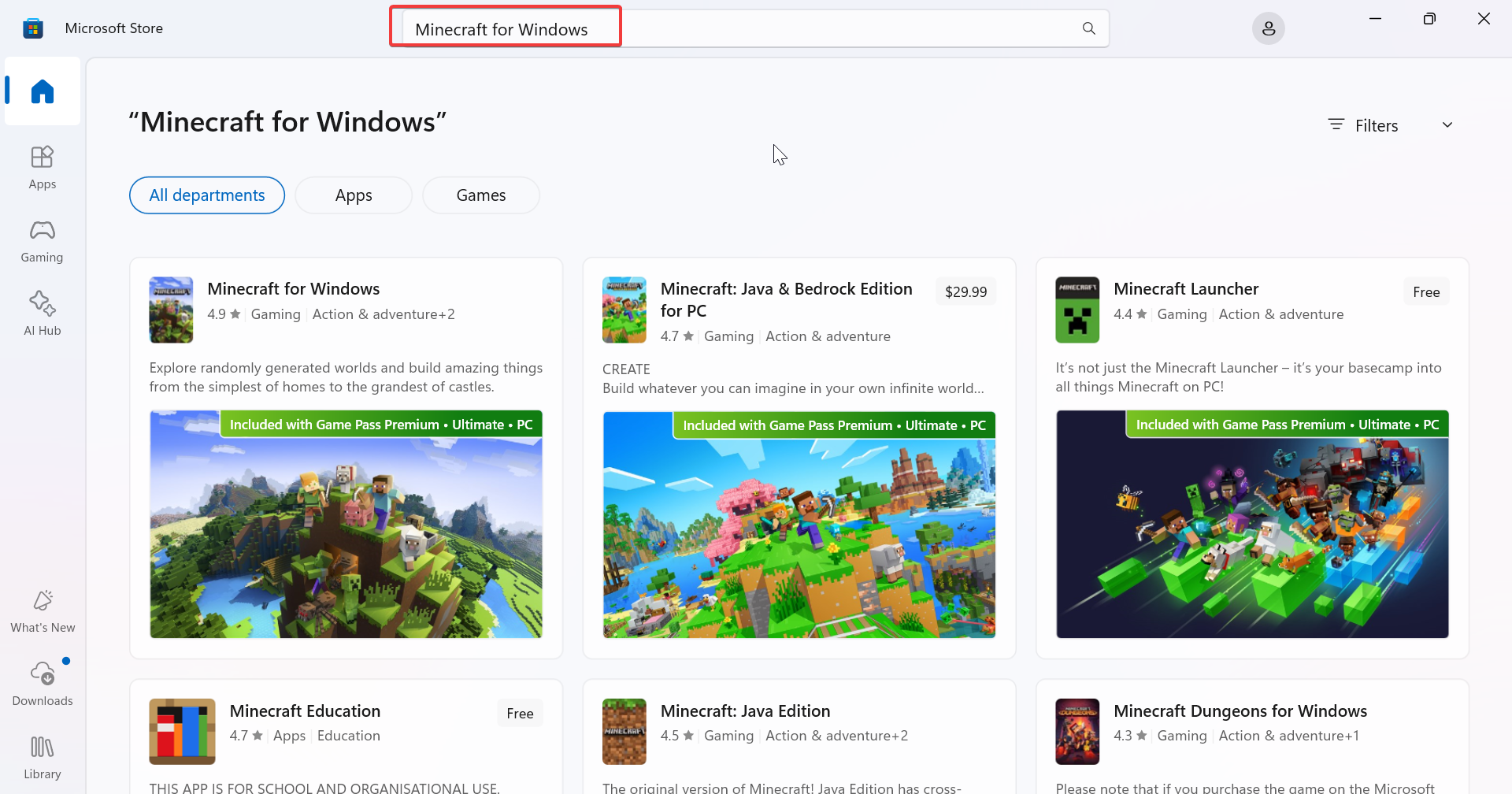 Anda dapat mengunduh Bedrock Edisi melalui Microsoft Store, aplikasi Xbox, atau Peluncur Minecraft terpadu. Pilih metode mana pun yang sesuai dengan penyiapan atau paket langganan Anda.