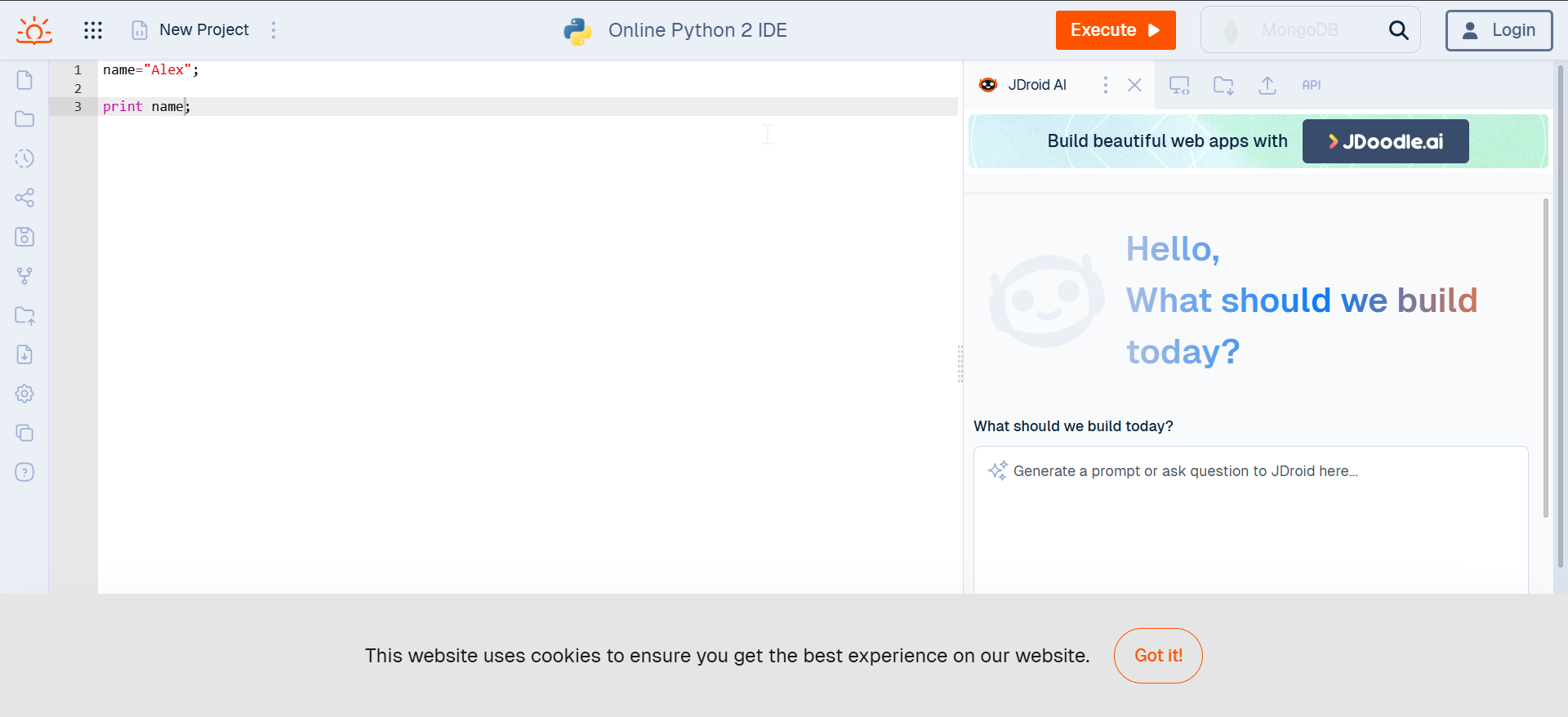 Program singkat ini membuat variabel bernama name yang menyimpan input pengguna, lalu menampilkannya dalam ucapan. Ini adalah cara sederhana untuk menunjukkan bagaimana data dapat dipindahkan melalui suatu program.