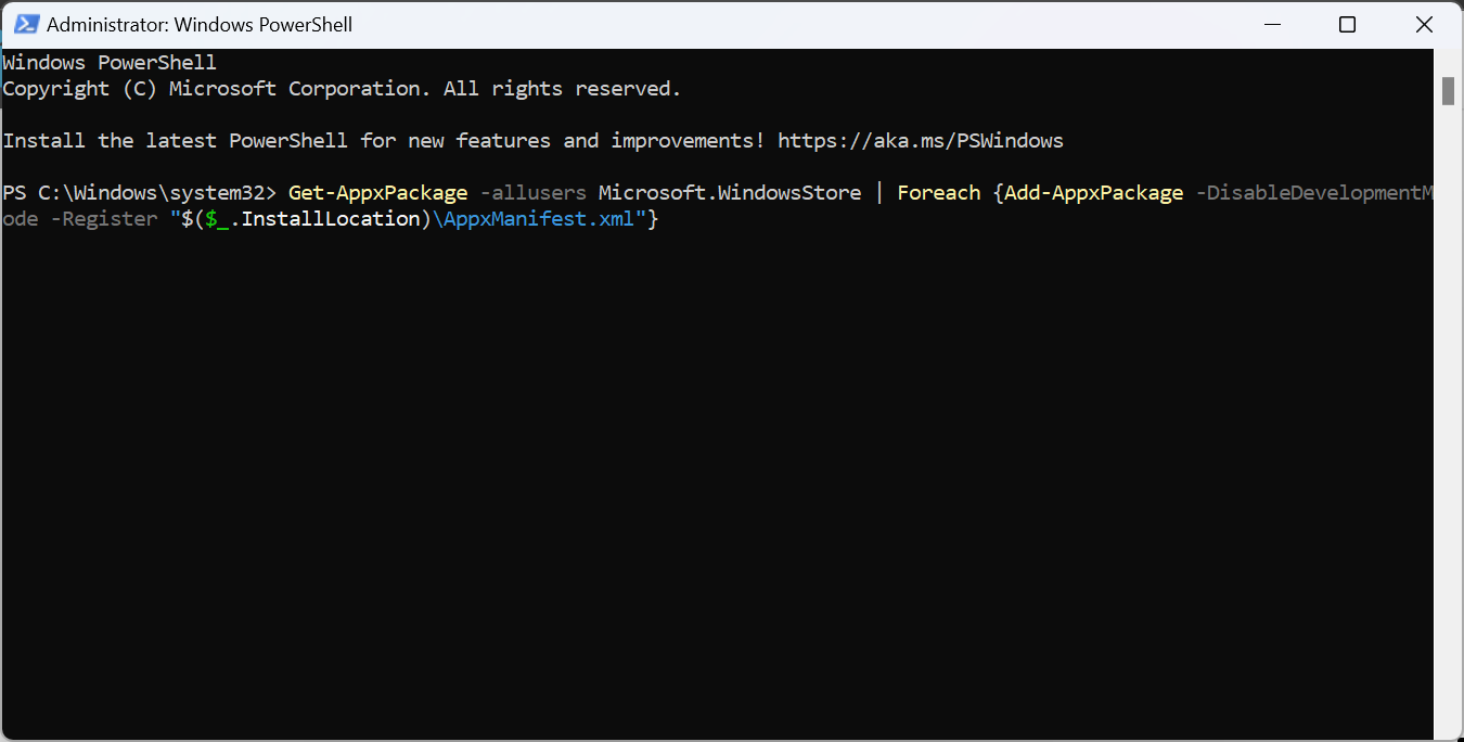 Gunakan PowerShell untuk Menginstal Ulang Microsoft Store