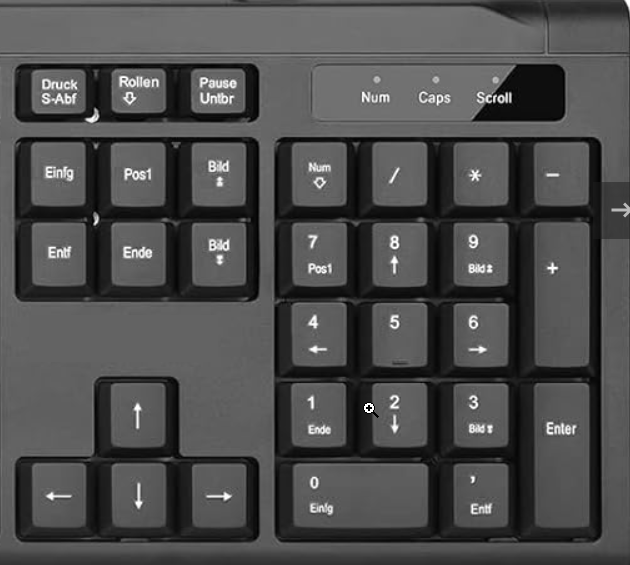 Keyboard ukuran penuh dilengkapi papan angka di sebelah kanan untuk memasukkan angka dengan cepat. Ini meniru tata letak kalkulator, yang ideal untuk pekerjaan akuntansi atau entri data.