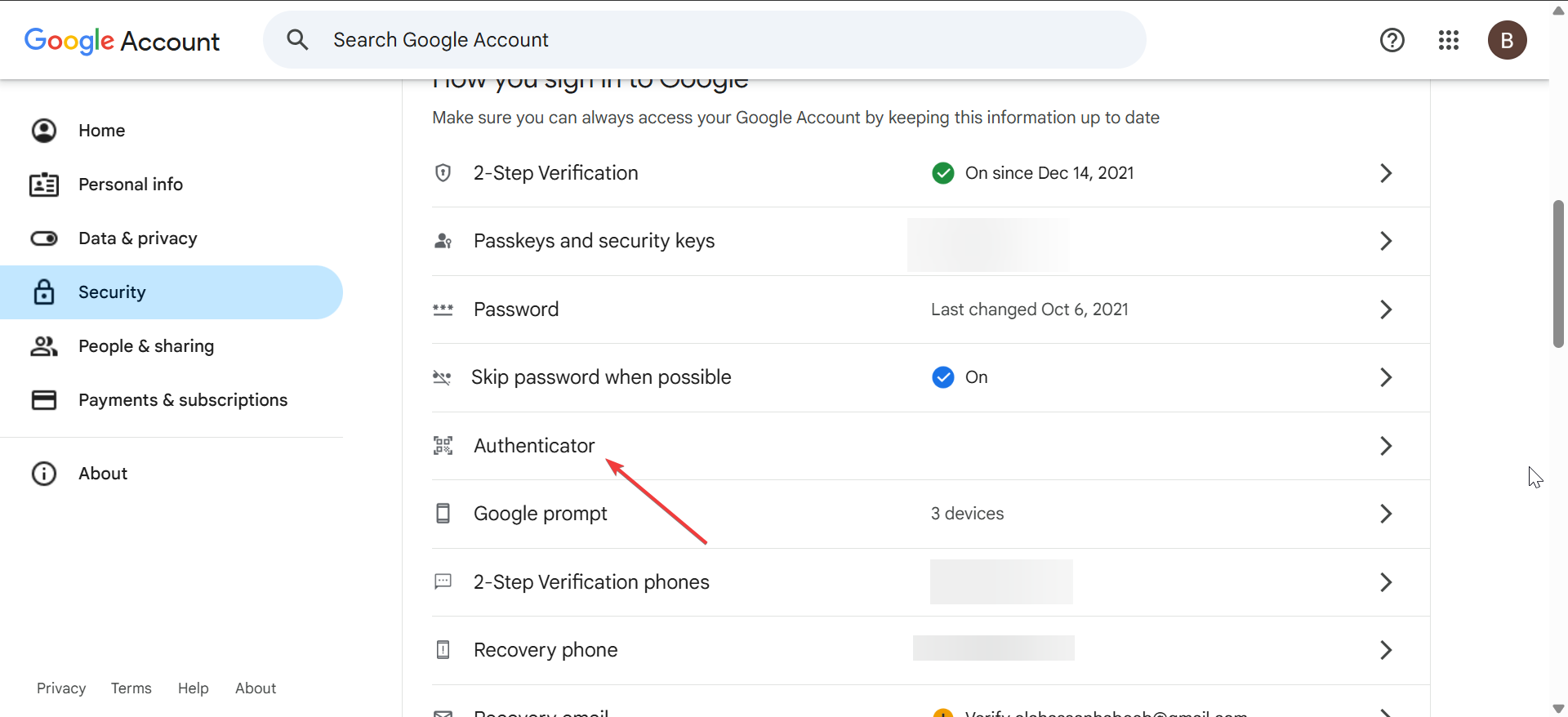 Untuk menemukan kode QR, Anda perlu menyiapkan verifikasi dua langkah untuk akun Google Anda. Mulailah dengan masuk ke akun Anda, lalu buka Keamanan > verifikasi 2 langkah. Sekarang, pilih opsi aplikasi Authenticator dan gunakan opsi Siapkan untuk menampilkan kode QR untuk login Google Anda.