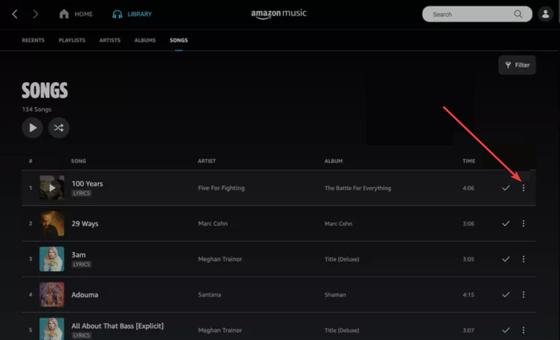 Metode ini berfungsi untuk pelanggan Prime dan Unlimited. Untuk memulai, buka aplikasi Amazon Music dan pilih playlist, album, atau lagu apa pun. Selanjutnya, klik tiga titik vertikal di samping item, lalu klik ikon Unduh dan tunggu hingga ikon berubah menjadi tanda centang.