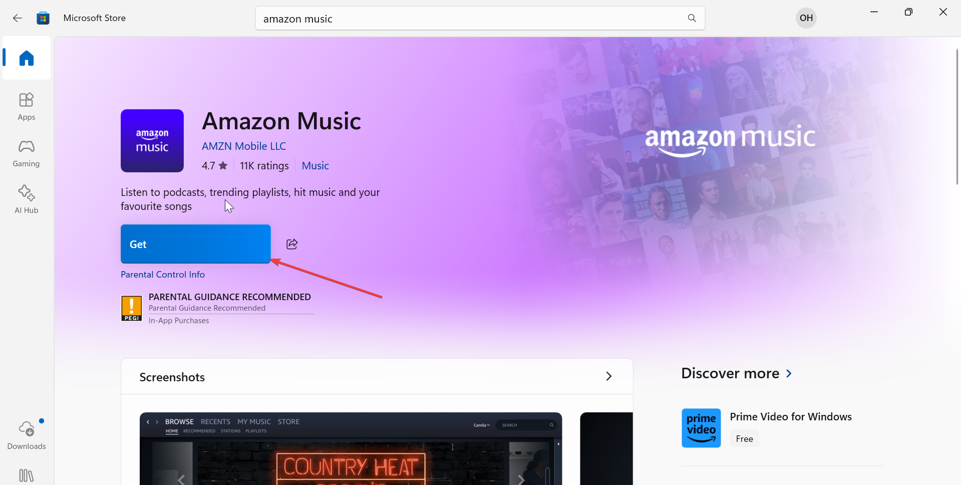 Buka App Store komputer Anda (Microsoft Store untuk Windows, App Store untuk Mac) dan cari Amazon Music. Selanjutnya, pilih Dapatkan untuk menginstal aplikasi. Terakhir, luncurkan aplikasi dan masuk dengan akun Amazon Anda.