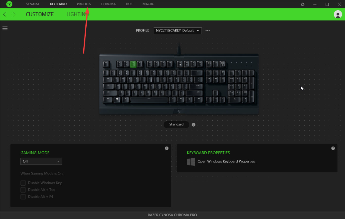 Sekarang, masuk untuk mengaktifkan sinkronisasi profil dan pengaturan pencahayaan di seluruh perangkat, lalu colokkan keyboard ke port USB langsung. Terakhir, buka Synapse dan verifikasi bahwa ikon Cynosa muncul di layar beranda.