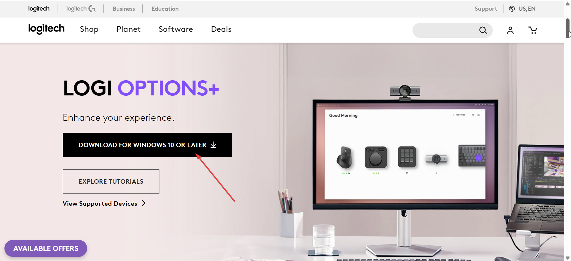 Unduh dan instal Logitech Options atau Options+ berdasarkan model Anda. Aplikasi ini mengidentifikasi perangkat, memperbarui firmware, dan menyelesaikan langkah-langkah penyiapan.