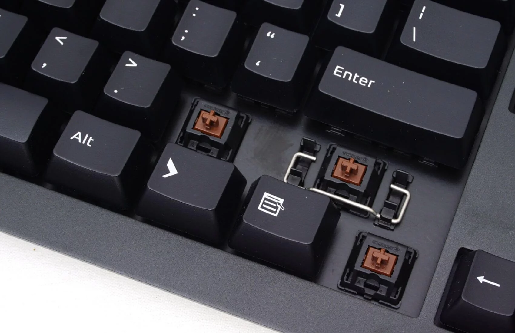 Sakelar berwarna coklat memberikan umpan balik sentuhan tanpa bunyi klik yang keras. Mereka bekerja dengan baik untuk penggunaan kantor, bermain game, menulis, dan pemrograman. Benjolannya tidak kentara namun membantu mencegah penekanan tombol yang tidak disengaja. Tombol ini lebih senyap dibandingkan tombol klik, namun lebih keras dibandingkan tombol linier. Pilihan menyeluruh yang kuat untuk pemula dan pengguna berpengalaman.