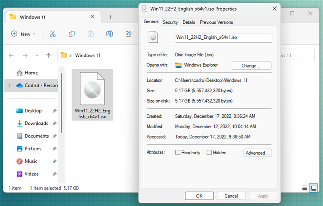 Media penginstalan Windows 11 yang disimpan sebagai gambar disk ISO