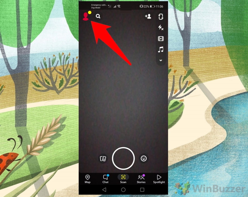 Ketuk ikon”Profil”di pojok kiri atas untuk membuka profil Snapchat Anda