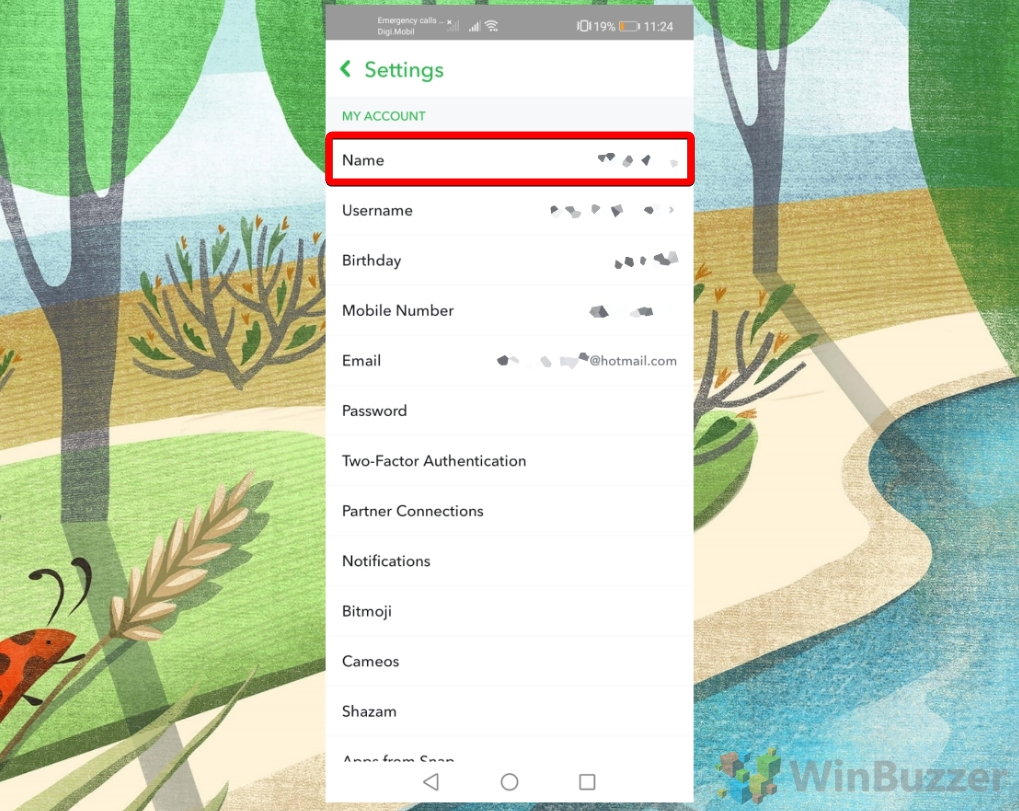 Di setelan Snapchat, ketuk “Nama Pengguna”