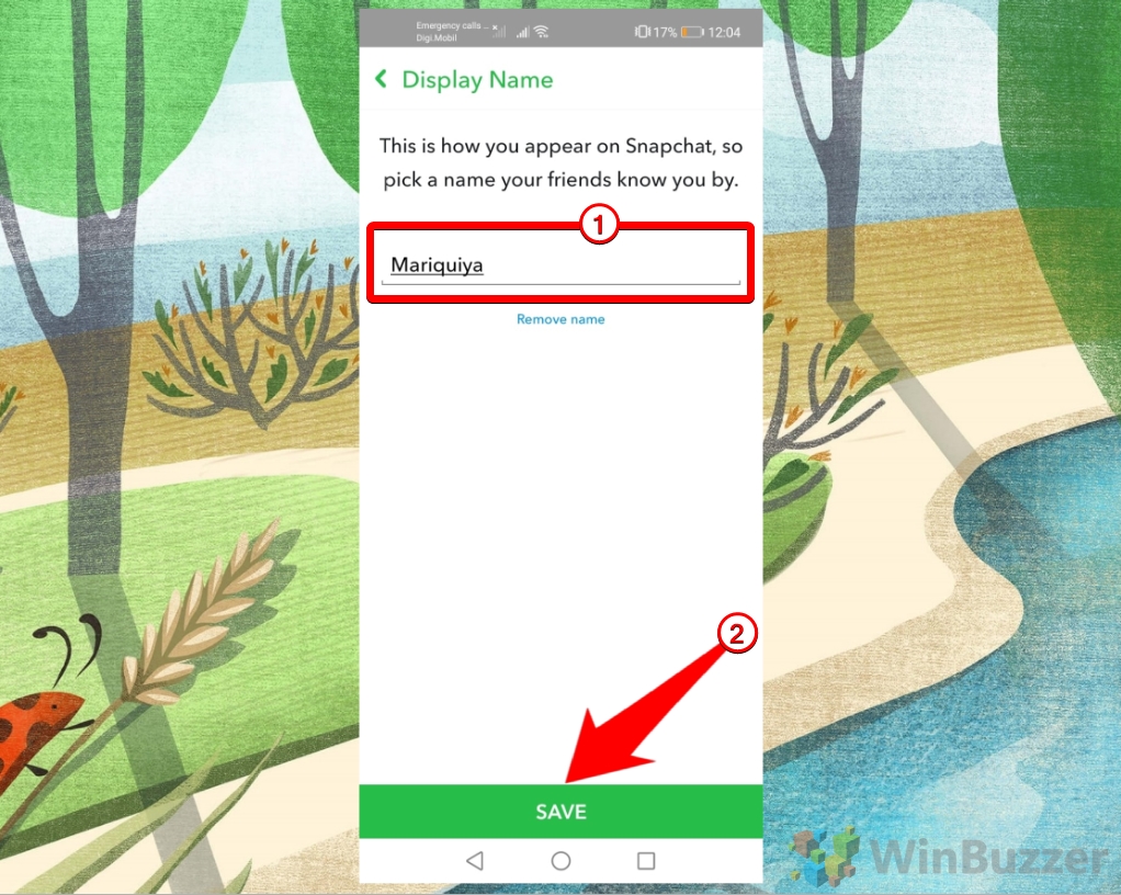 Ketik nama panggilan Snapchat Anda dan ketuk “Simpan”di bagian bawah