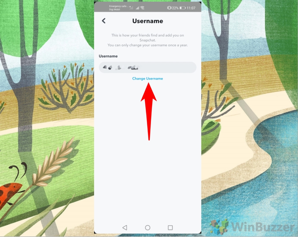 Ketuk “Ubah Nama Pengguna”, tertulis dengan warna biru, seperti yang ditunjukkan pada gambar