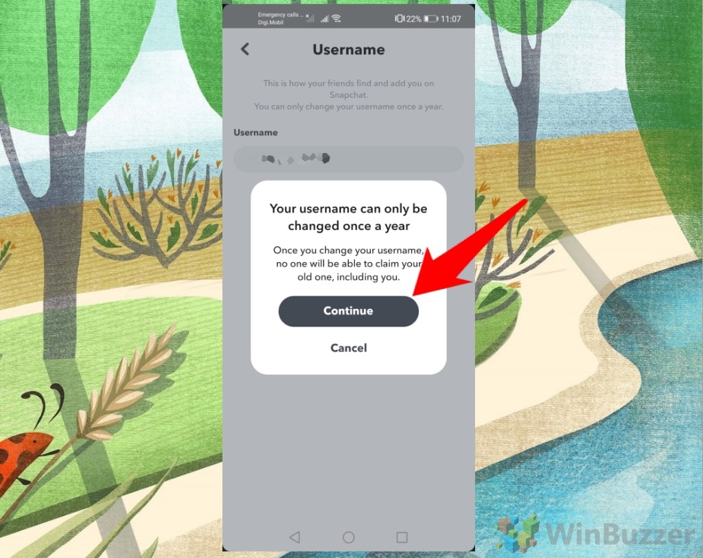 Anda dapat mengubah nama pengguna di Snapchat setahun sekali, dan Anda dapat mengetuk”Kembali”jika Anda berubah pikiran. Namun begitu Anda mengetuk”Lanjutkan”, nama pengguna Snapchat baru Anda akan permanen selama satu tahun.