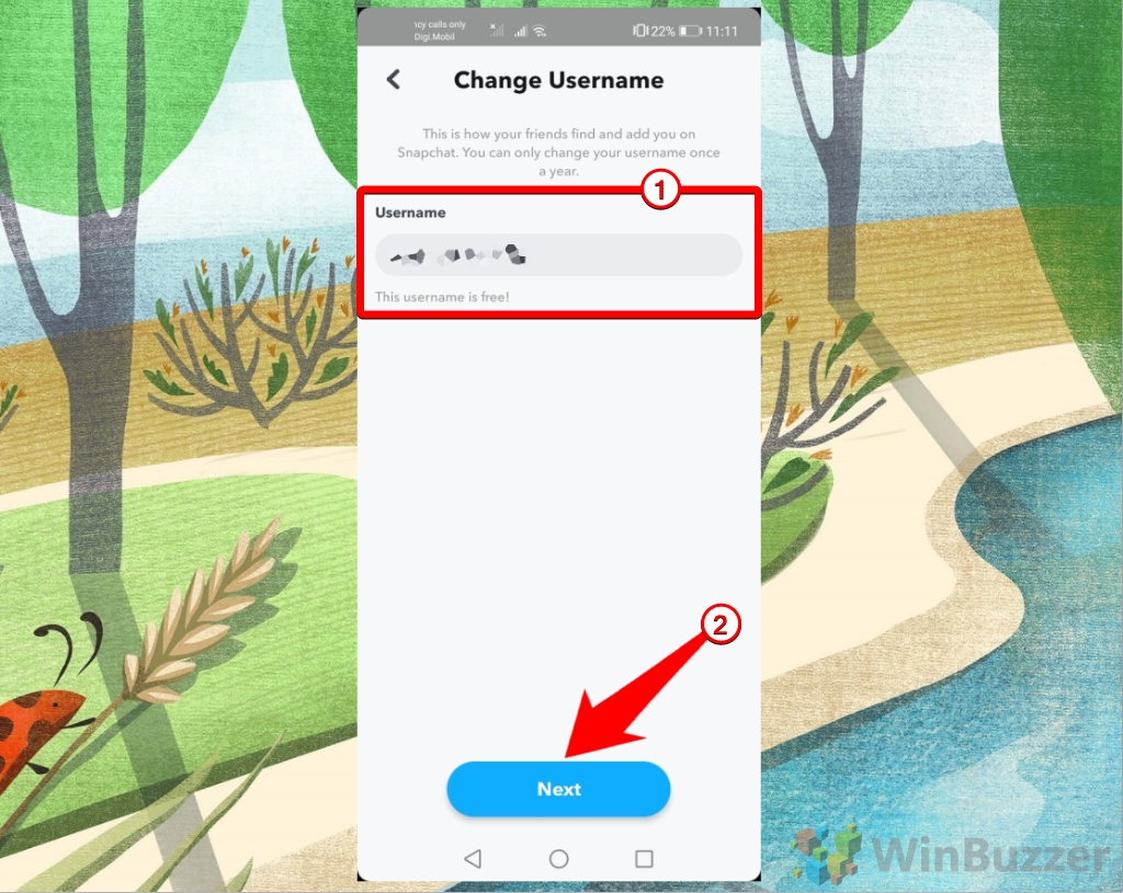 Ketikkan nama pengguna baru Anda dan ketuk”Berikutnya”di bagian bawah