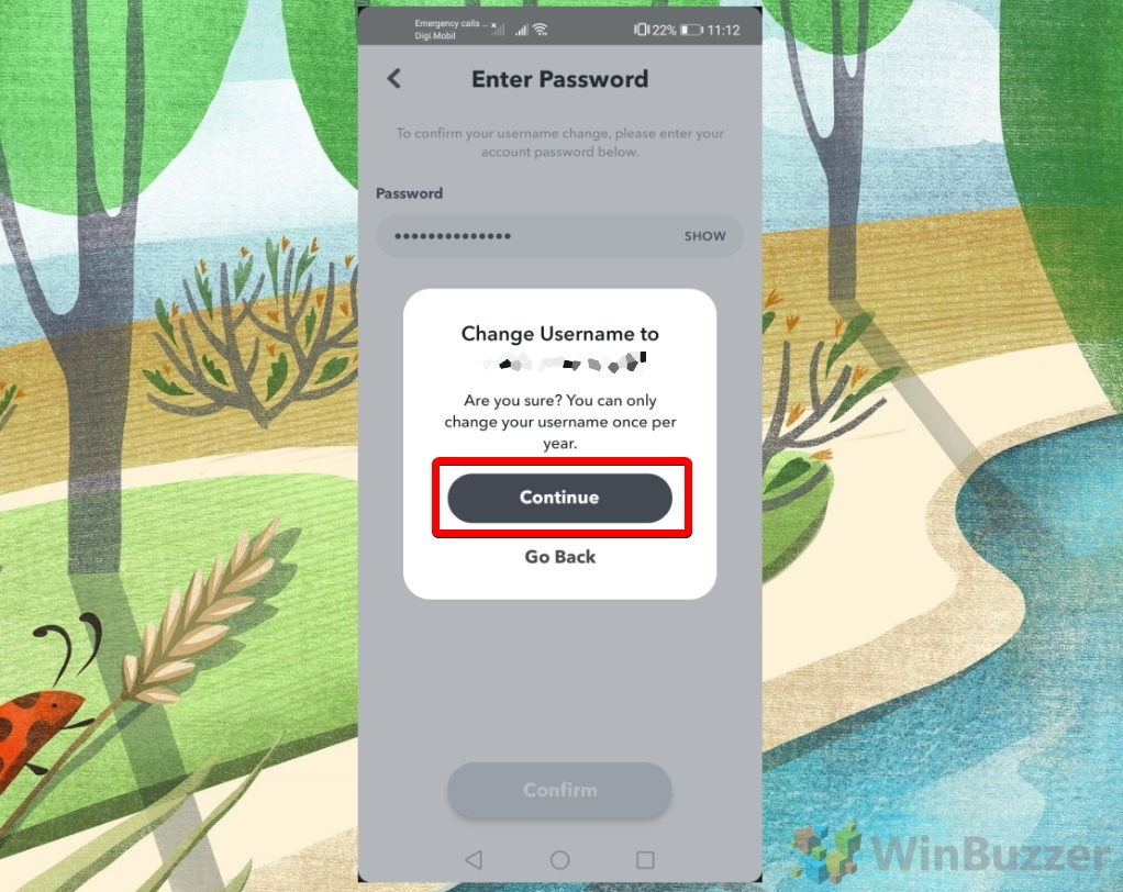 Permintaan konfirmasi akan muncul setelah Anda mengubah nama pengguna Snapchat