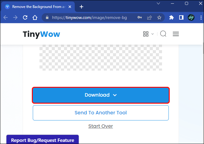 Anda akan perhatikan bahwa TinyWow memiliki opsi tambahan setelah penghapusan latar belakang selesai. Anda dapat memilih”Kirim ke Alat Lain”untuk mengekspor gambar ke editor foto lain.