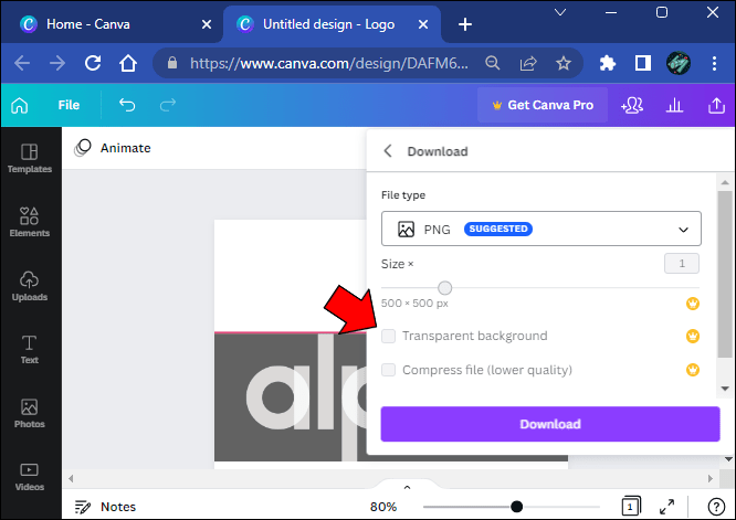 Centang kotak “Latar belakang transparan”di bagian “Opsi pro”.