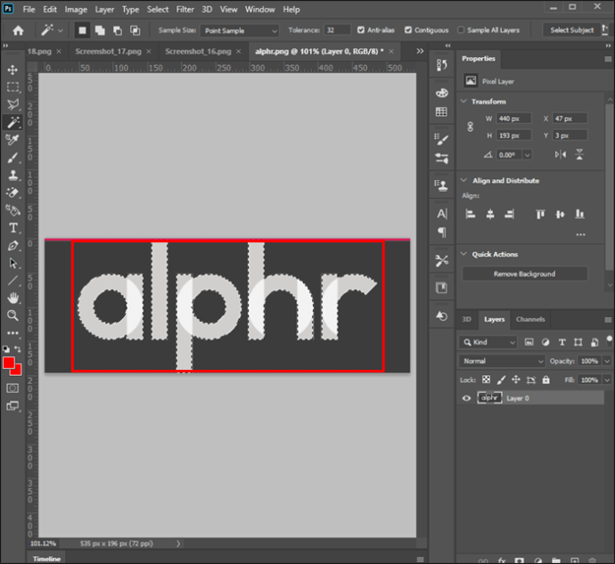 Anda akan tahu bahwa Anda pernah berhasil jika Anda melihat latar belakang kotak-kotak putih dan abu-abu di belakang objek Anda. Hal ini menunjukkan transparansi dalam Adobe Photoshop.