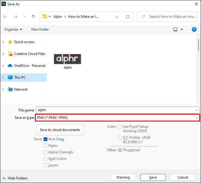Perhatikan bahwa ada batasan. Misalnya, Anda tidak dapat melakukan ini dan mengekspor ke file 8-bit atau format PNG-8.