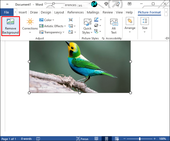 Namun, Word tidak memiliki penggeser transparansi dan juga tidak berfungsi dengan gambar berlapis. Oleh karena itu, Anda dapat menghapus latar belakang tetapi tidak dapat membuatnya transparan.