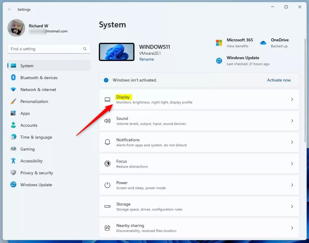 Saat aplikasi Pengaturan terbuka, klik tombol Sistem di sebelah kiri.