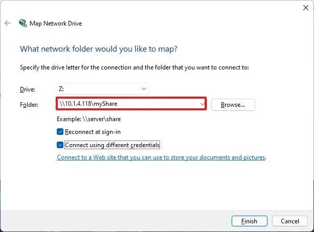 Ketik jalur ke folder bersama di jaringan.