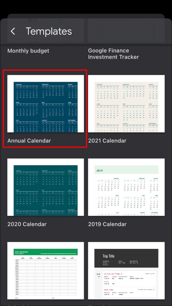 Ketuk”Pilih Template.”Template Kalender Tahunan adalah kalender dinamis yang mengubah hari secara otomatis tergantung pada tahun. Templat kalender lainnya perlu diubah secara manual. Pilih templat mana yang Anda sukai.