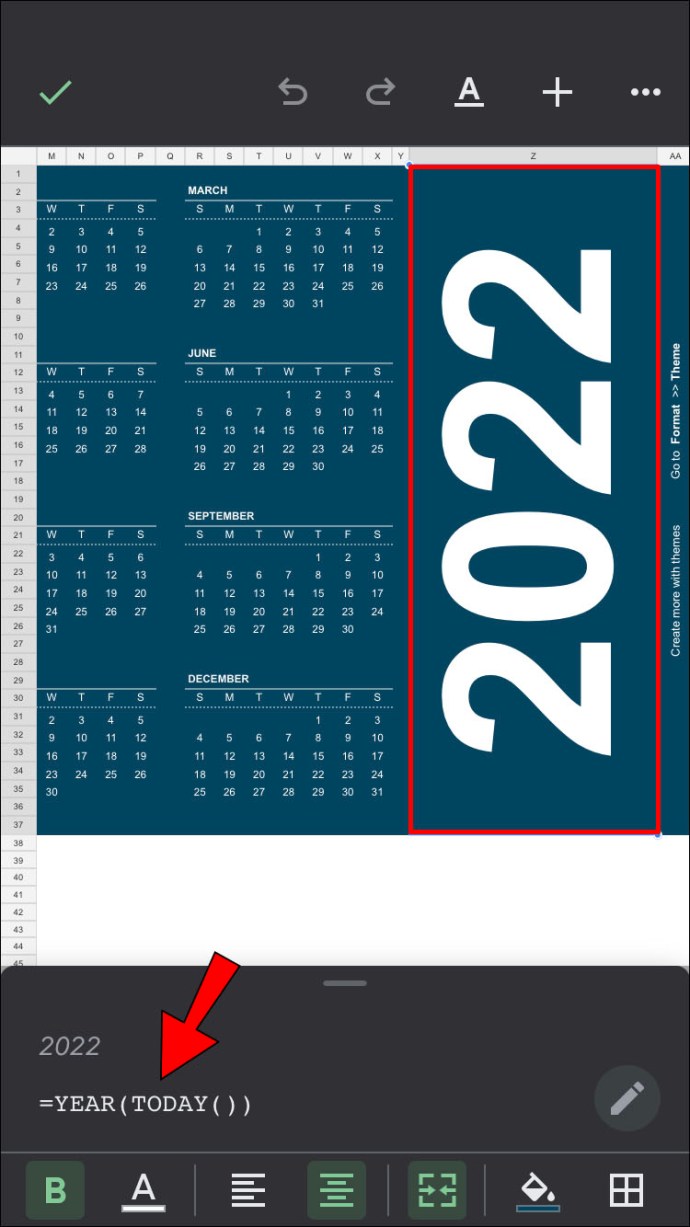 Seperti versi desktop, mengetuk tahun akan memungkinkan Anda mengubah tahun yang ditampilkan melalui rumus “=YEAR(TODAY) ()).”