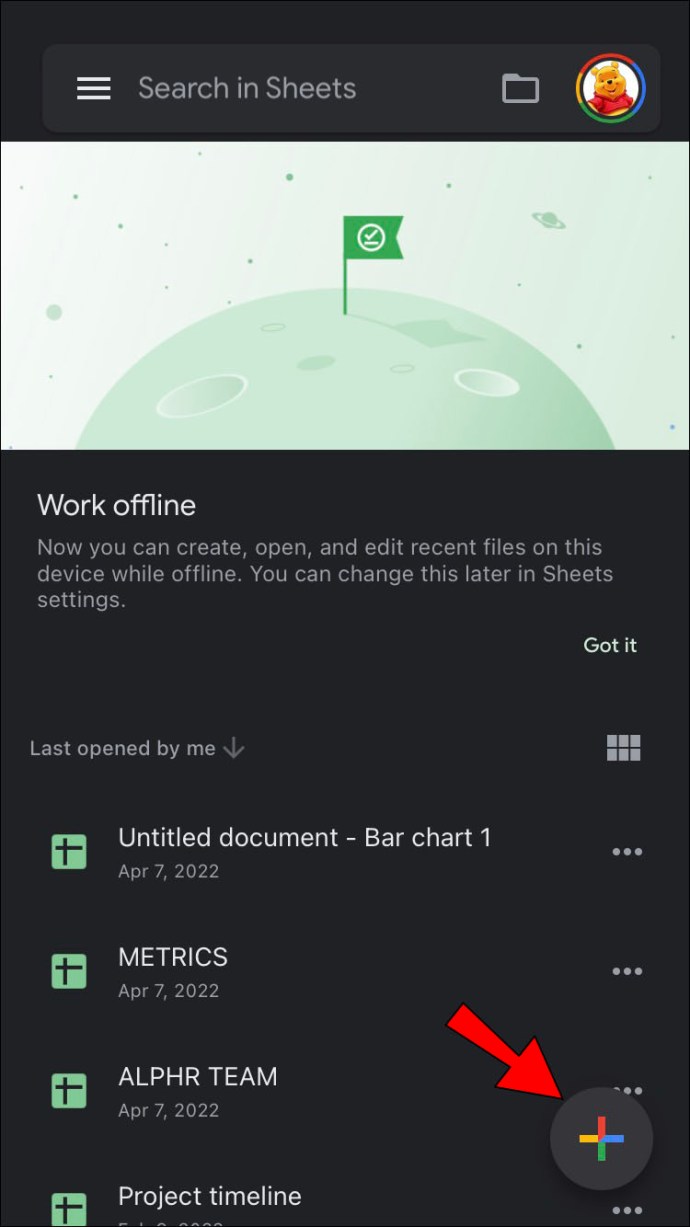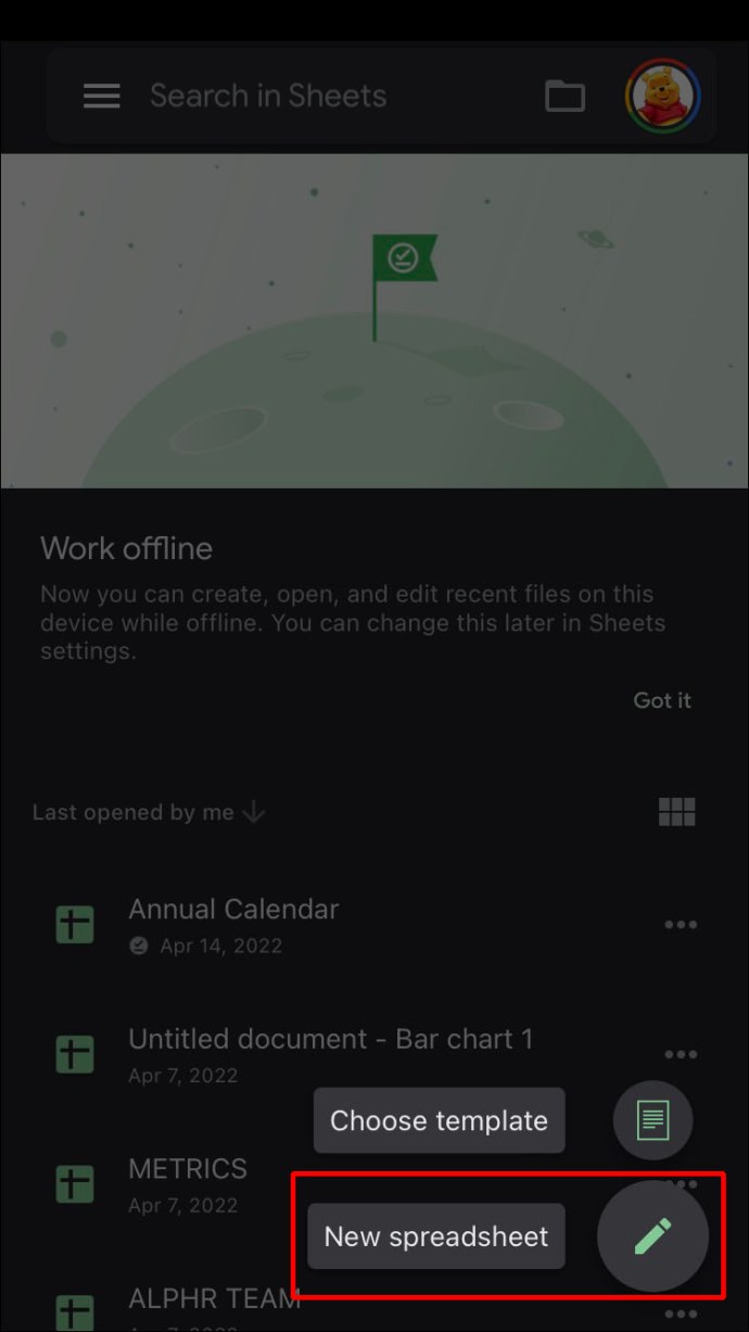 Ketuk ikon + untuk membuat spreadsheet baru.
