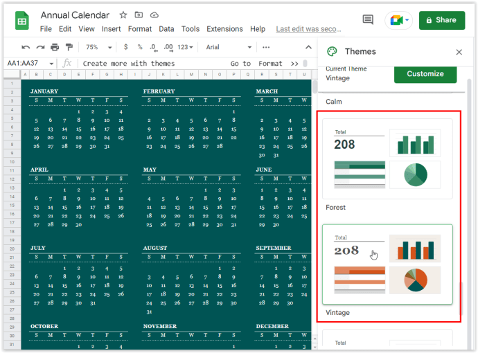 Untuk mengubah gaya kalender, klik”Format”di menu atas, lalu pilih”Tema.”